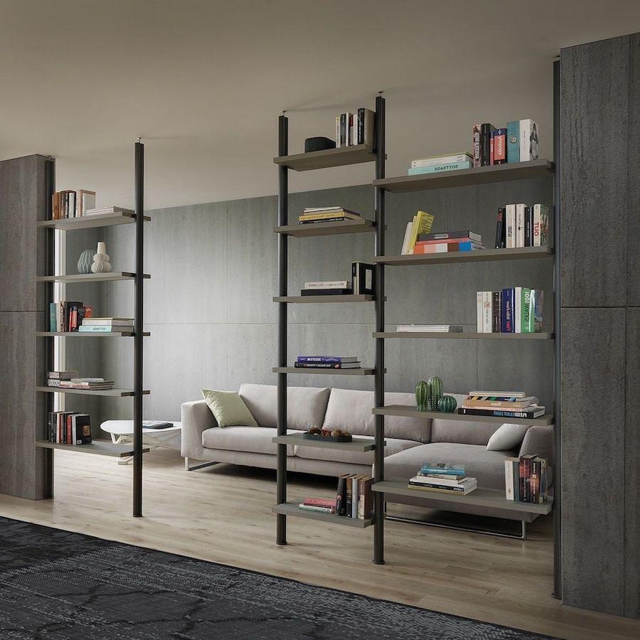 Grid-style shelves give a modern and structured look.