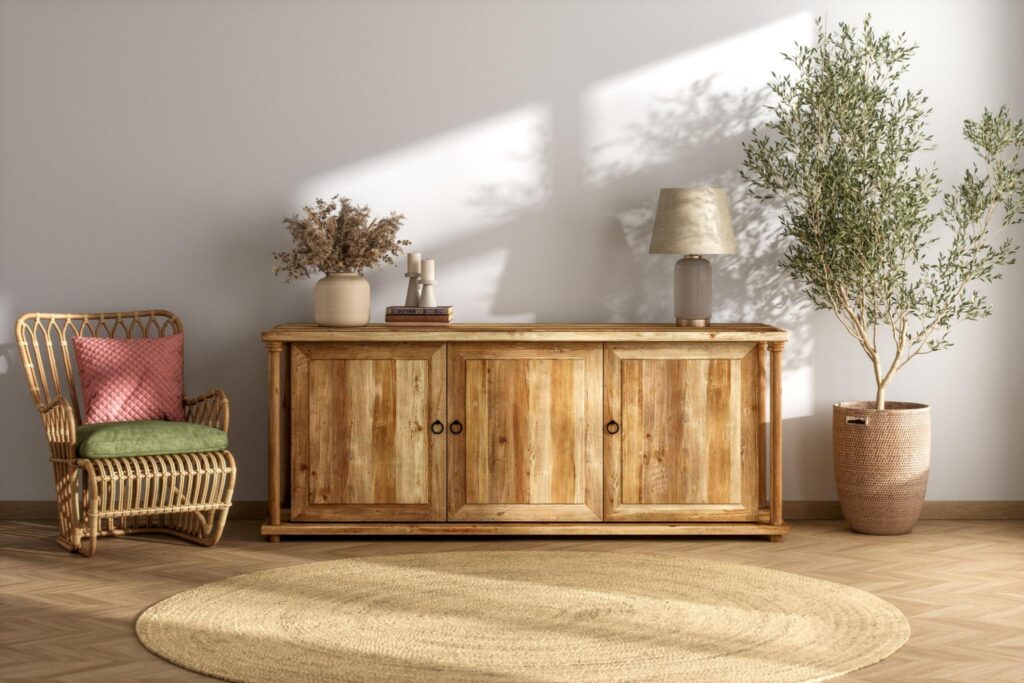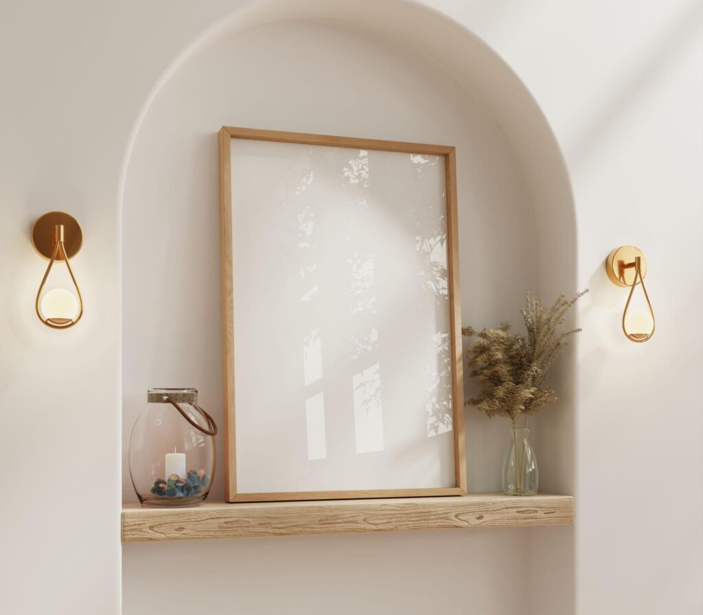 I added small wooden pieces like trays, shelves, and frames. Even one or two wooden accents can make the space feel warmer and more natural.