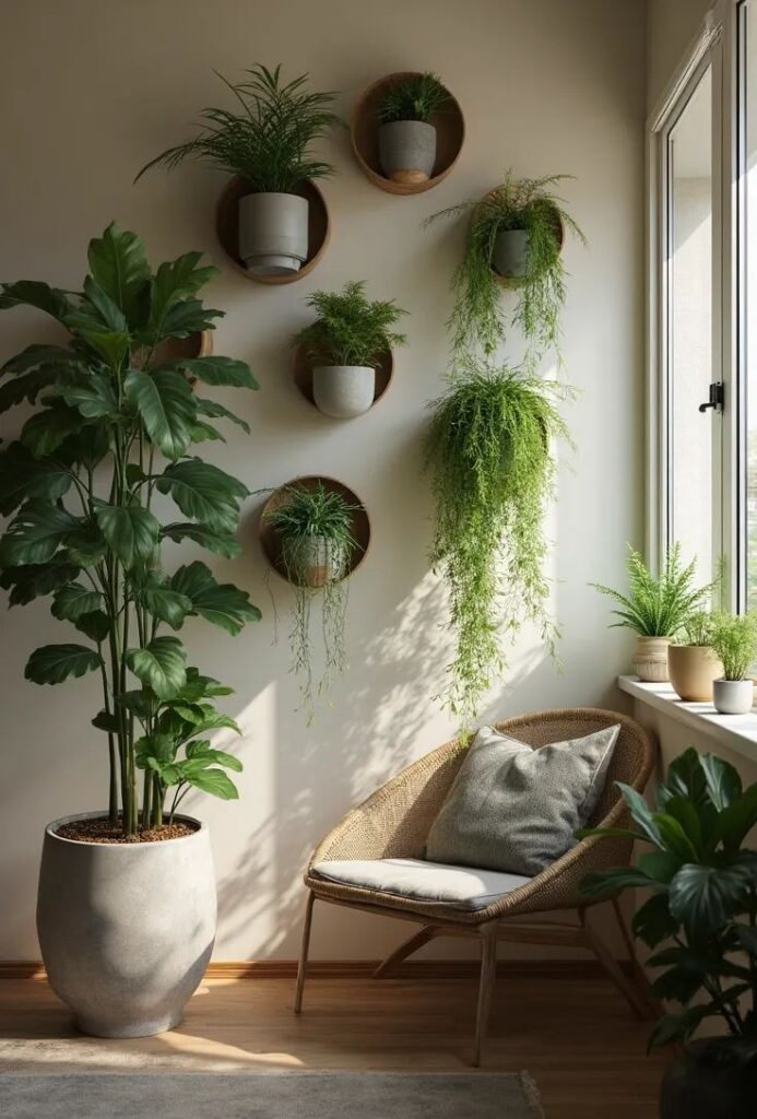 Instead of keeping everything on tables, I used simple wall planters. It brought life to empty vertical space and made the room feel fresher.